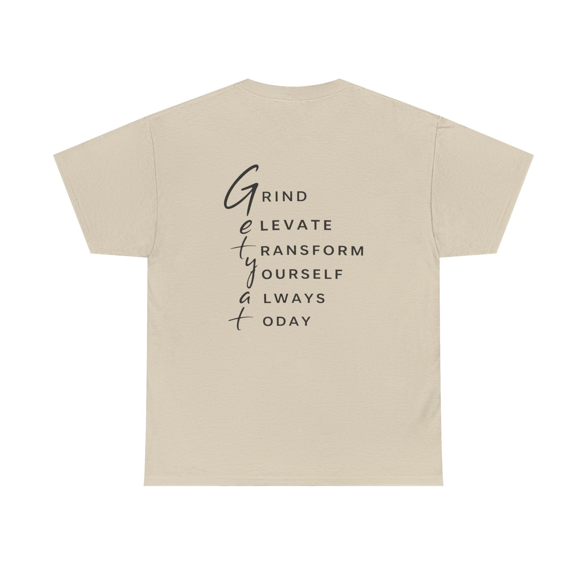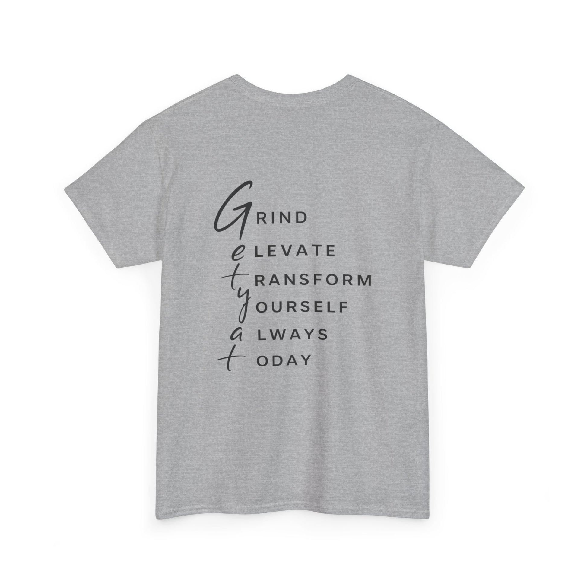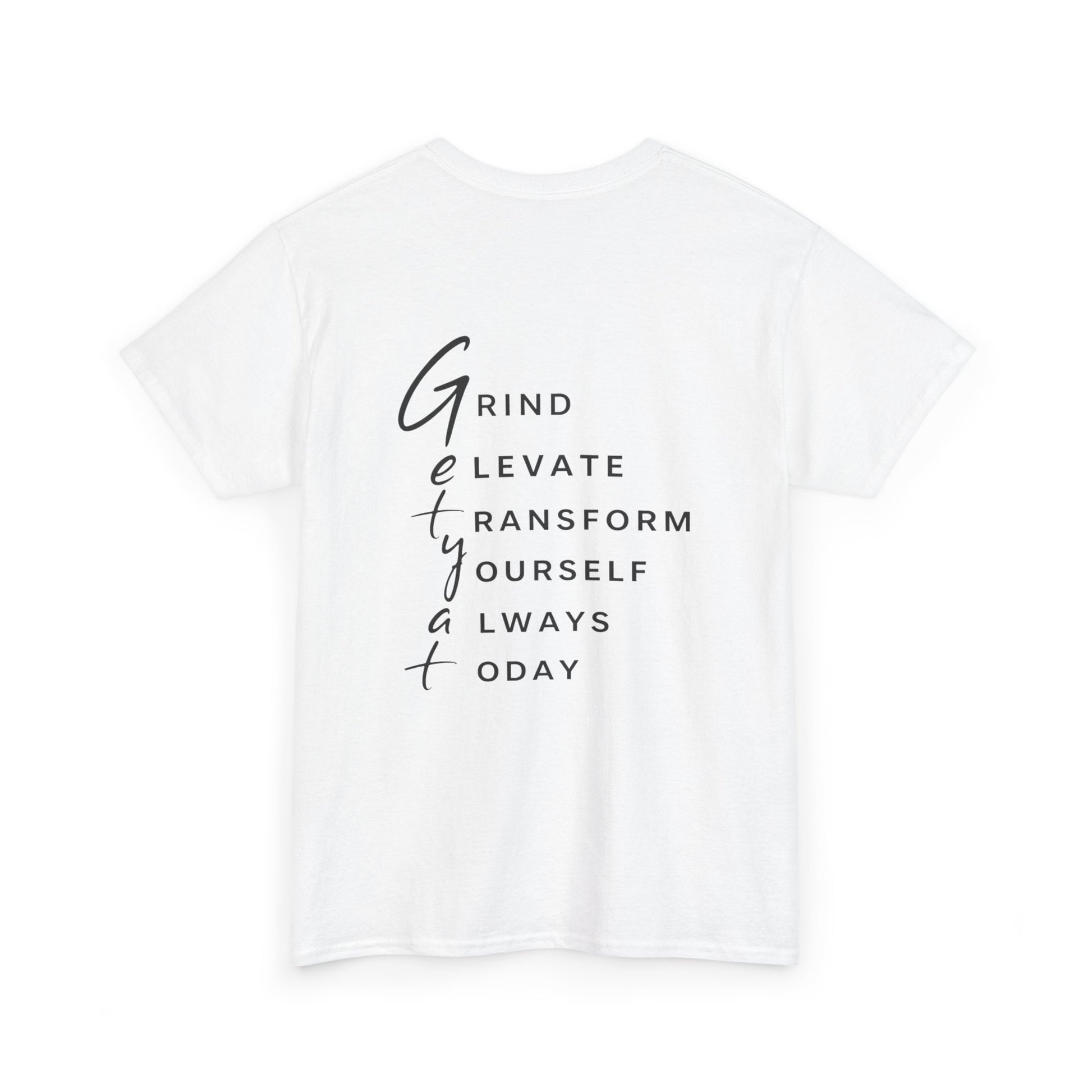 Motivational T-Shirt – “GETYAT” Acronym Back Print | Grind Elevate Transform Yourself Always Today